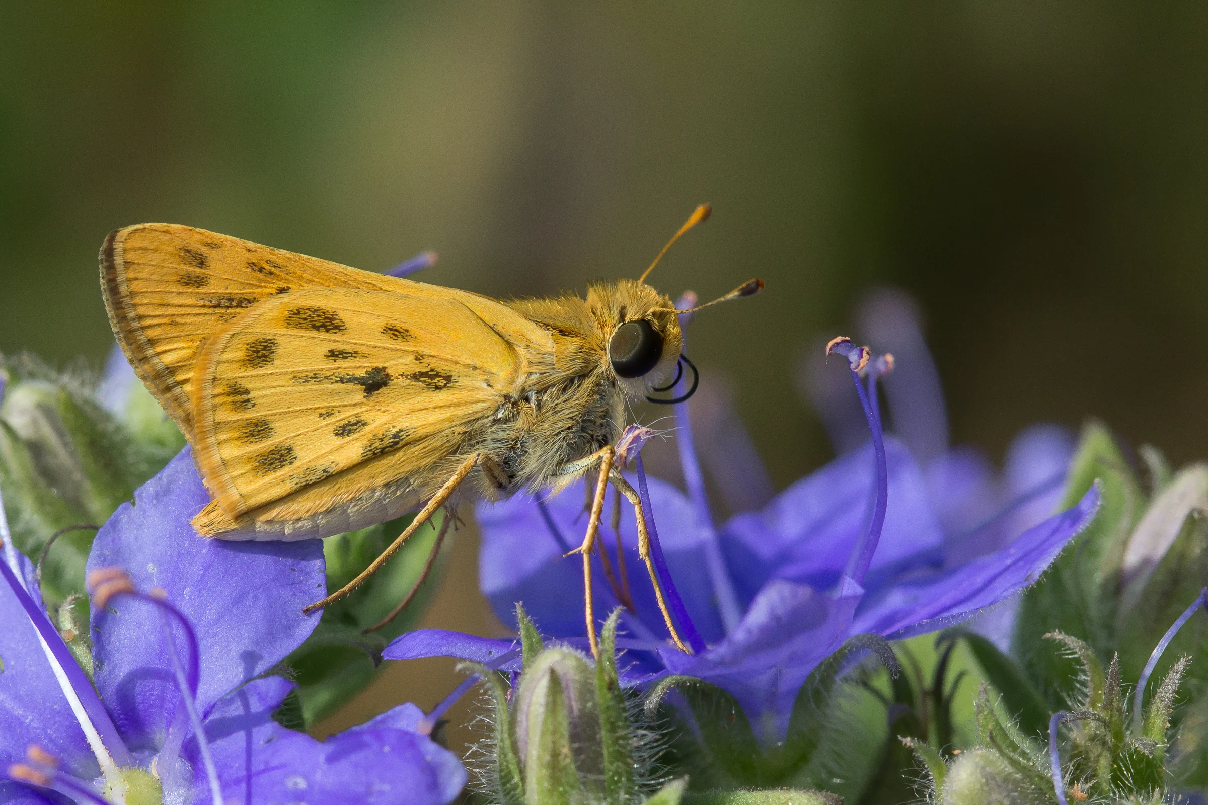 A Fiery Skipper just finishes drinking nectar.