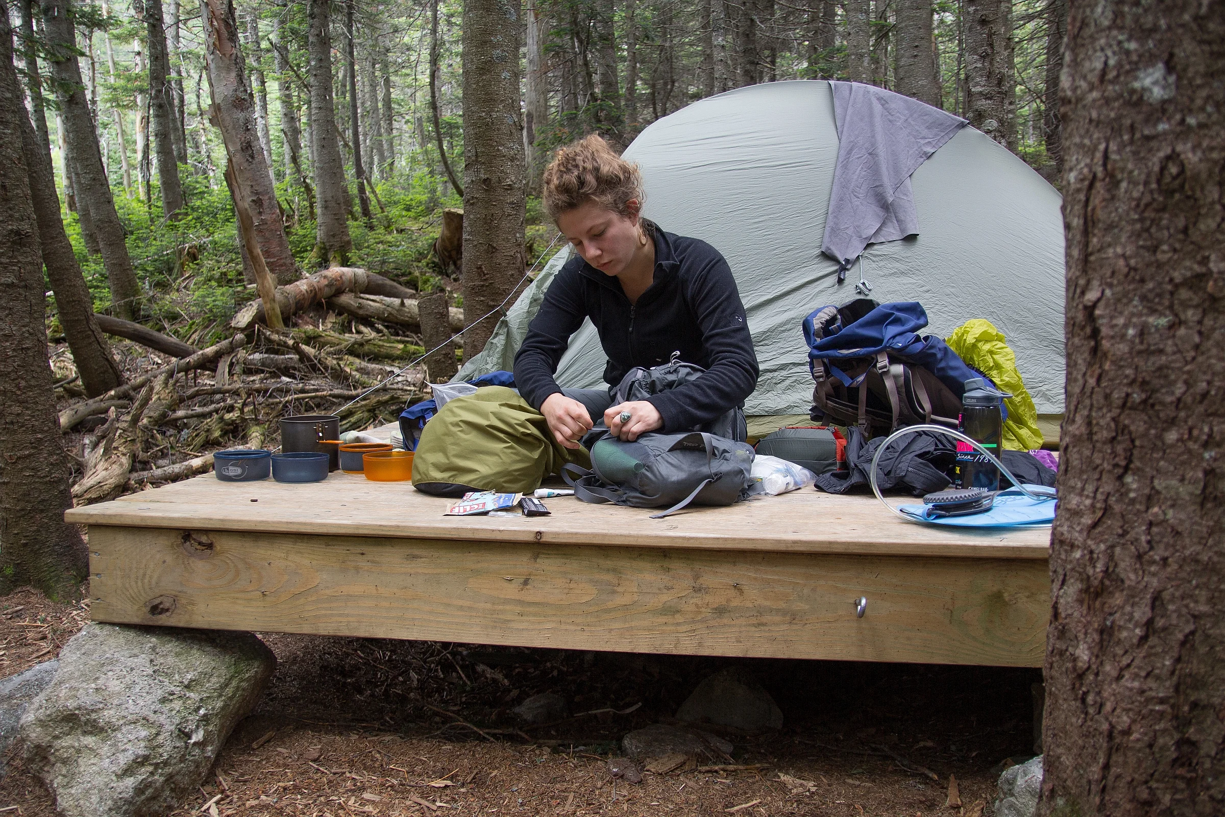 We parked at Pinkham Notch Visitors' Center, and decided to camp at Hermit Lake, near the base of Tuckerman's Ravine. We set off around 5 pm, enjoying the fading daylight as we hiked the 2.4 miles to our campsite.
