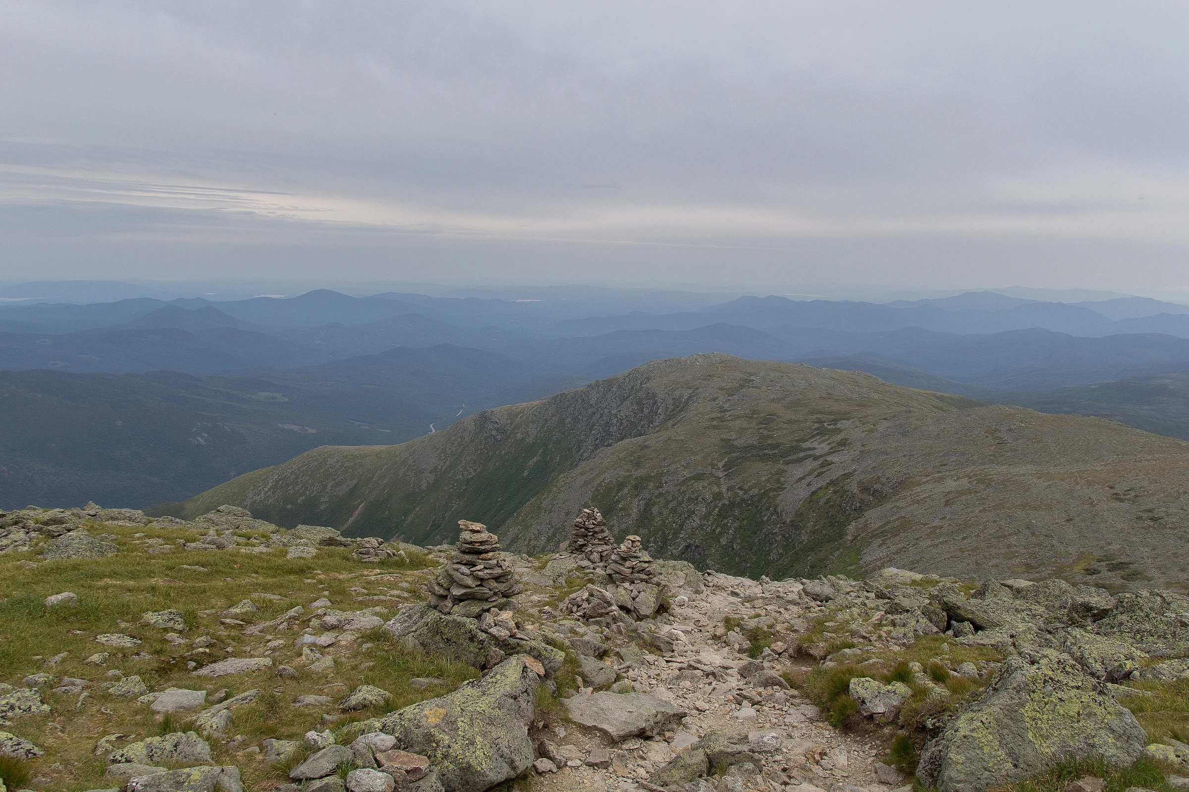 The next day we planned out a loop to summit Mt. Washington. We scrambled up Boott Spur Trail, over to Lakes of the Clouds, and finally made it to the summit on the Appalachian Trail. We were fortunate with weather: cool and overcast, but no rain. In the evening, during our descent on Lion's Head, the sun broke through the clouds, casting a brilliant gold on the green ridges.